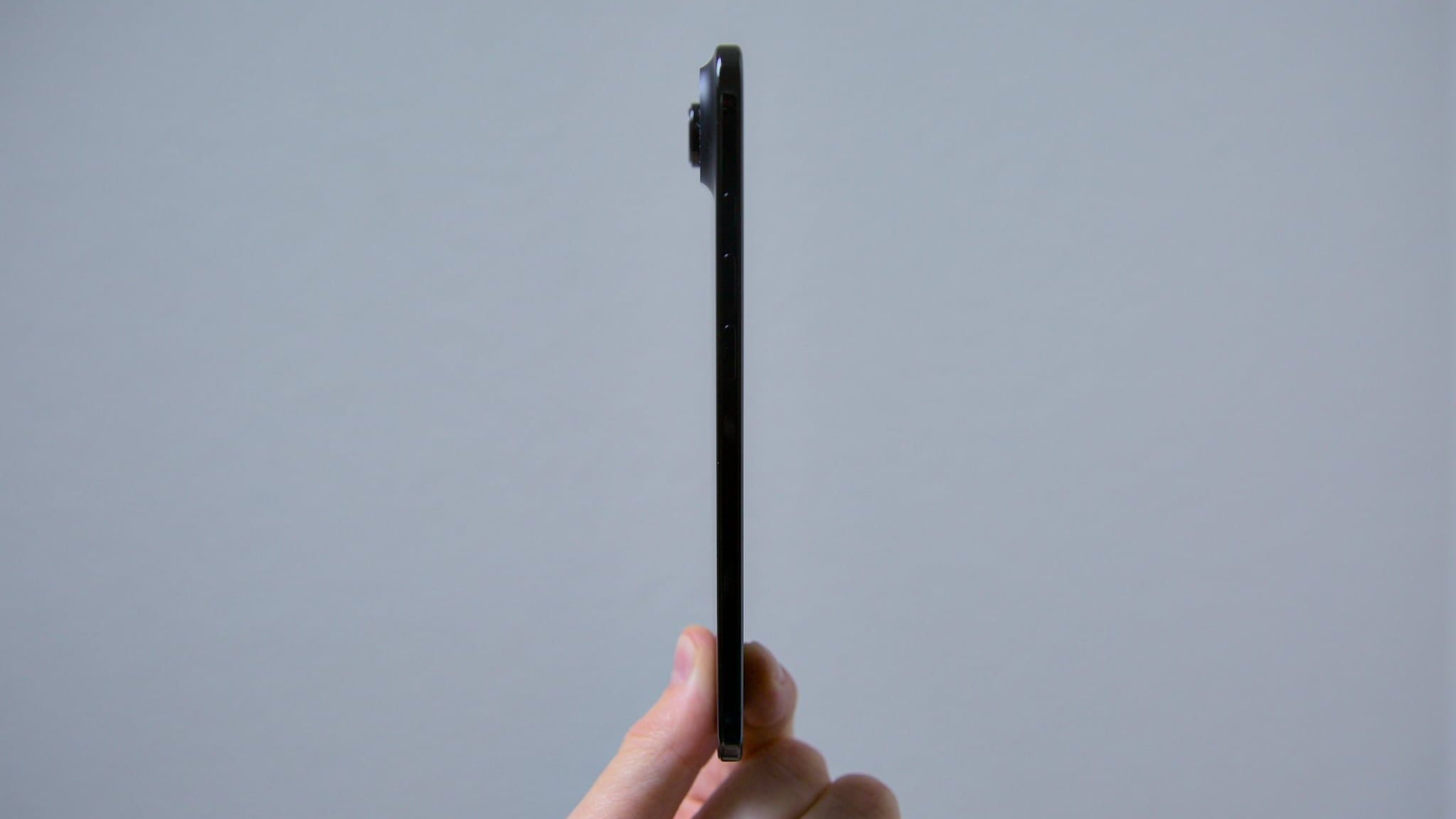 Mit nur 165 Gramm ist das Air auch ungewöhnlich leicht. Nur das iPhone 12 kam in jüngerer Vergangenheit an dieses Gewicht heran – hatte aber einen kleineren Bildschirm und war deshalb rund ein Zentimeter weniger hoch und zwei Millimeter dicker. Tatsächlich waren seit dem iPhone X (2017) alle iPhone-Modelle (ausser den «mini»-Versionen 12 und 13 von 2020 resp. 2021) schwerer. Der hochwertige Titan-Rahmen und die matte Rückseite aus «Ceramic Shield»-Glas sorgen zudem für ein sehr angenehmes, hochwertiges Gefühl in der Hand.